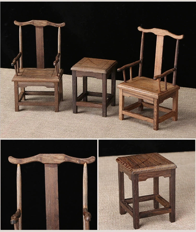 1/6スケール 中国アンティーク風 テーブル&官帽椅子セット|シノワズリ ドールハウス家具(椅子2脚+テーブル1点)