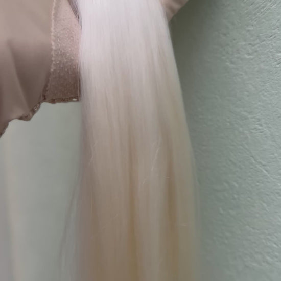 Its high gloss finish and natural movement make it perfect for elegant hairstyles, from straight cuts to curls or braids. The fibers are cleaned and combed by hand to maintain integrity and shine.