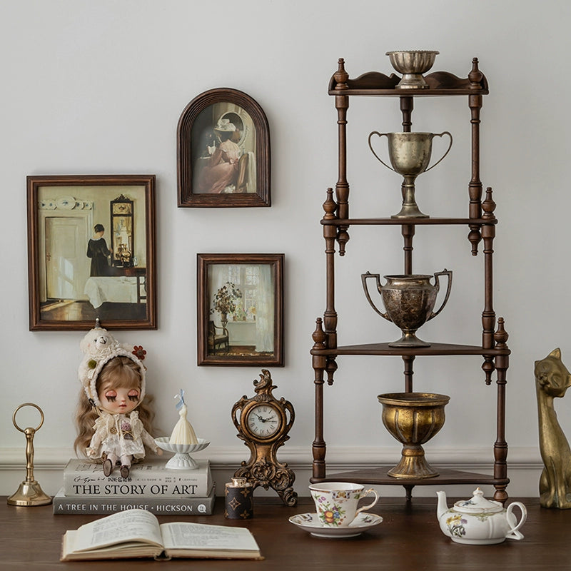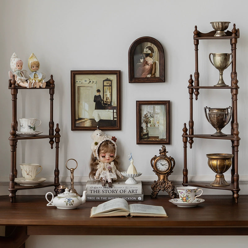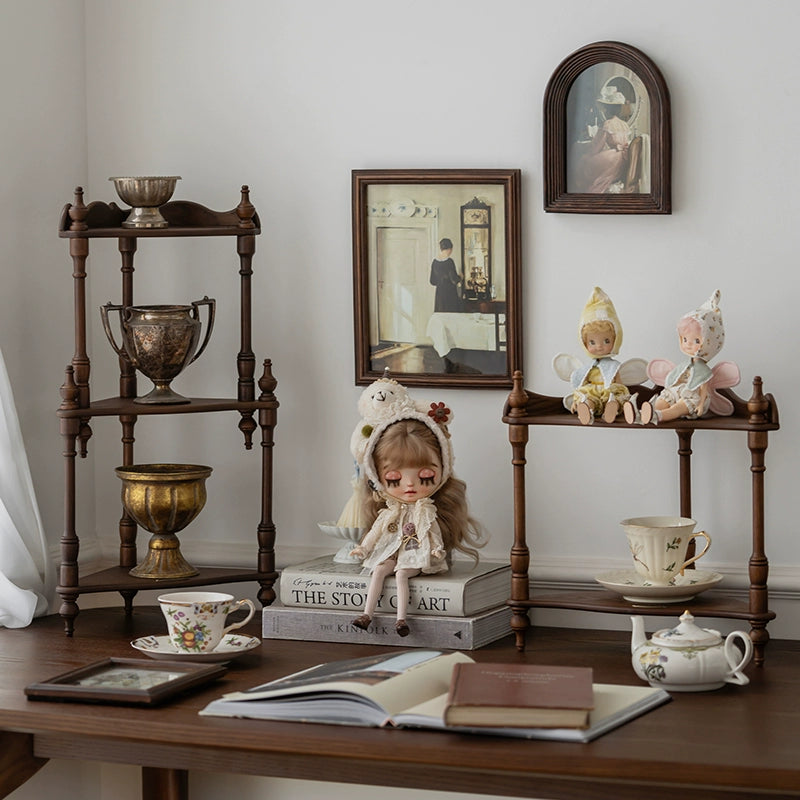 Vintage solid wood desktop storage shelf, cup holder, figurine toy desktop shelf, multi-layer display shelf