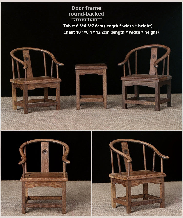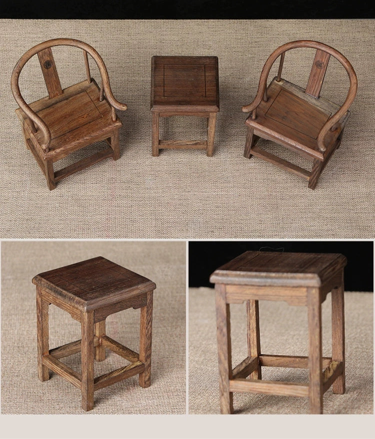 1/6スケール 中国アンティーク 太子椅子セット 椅子2脚とサイドテーブル1台| BJD&ブライス用 シノワズリスタイル ドールハウス家具|ヴィンテージ&エレガントな雰囲気