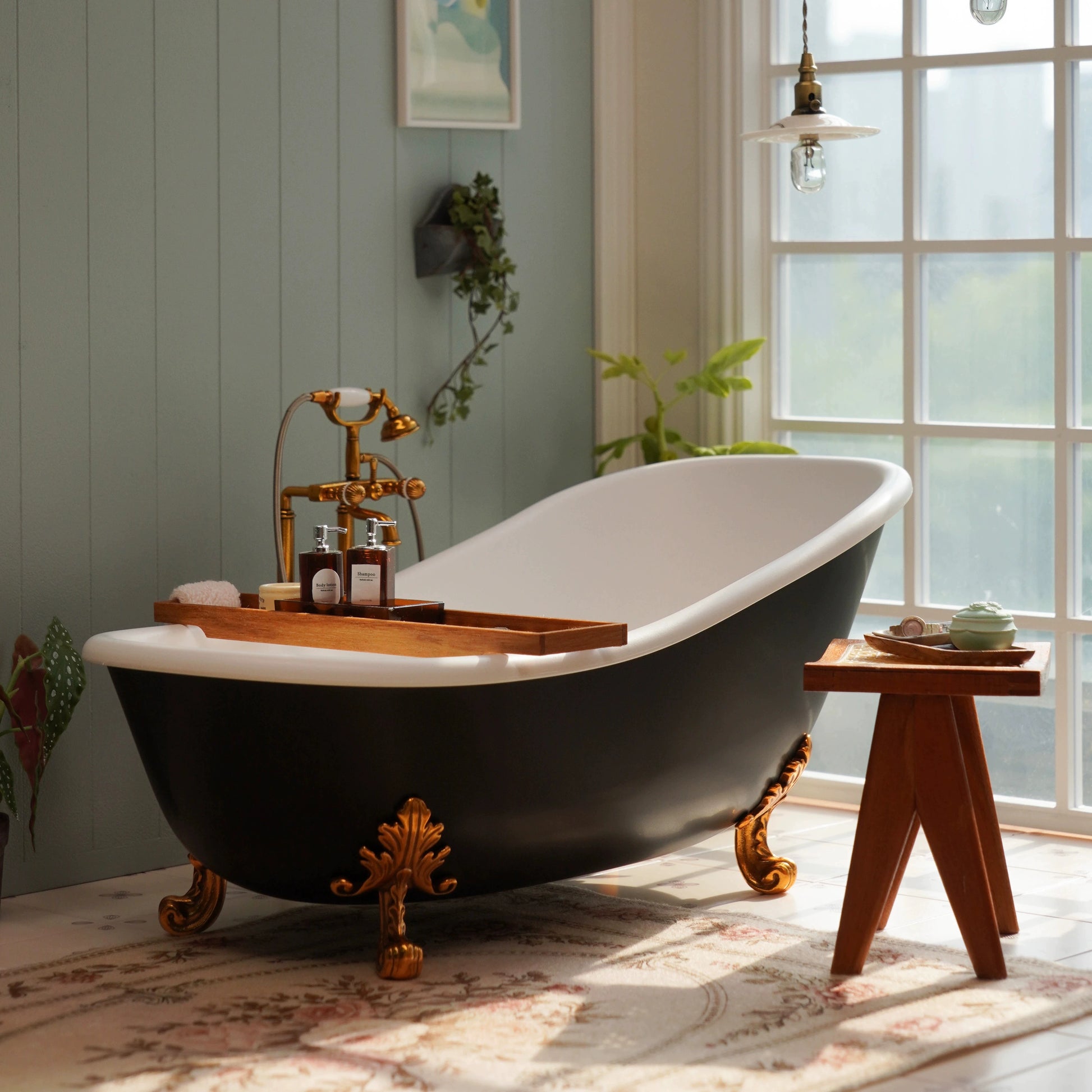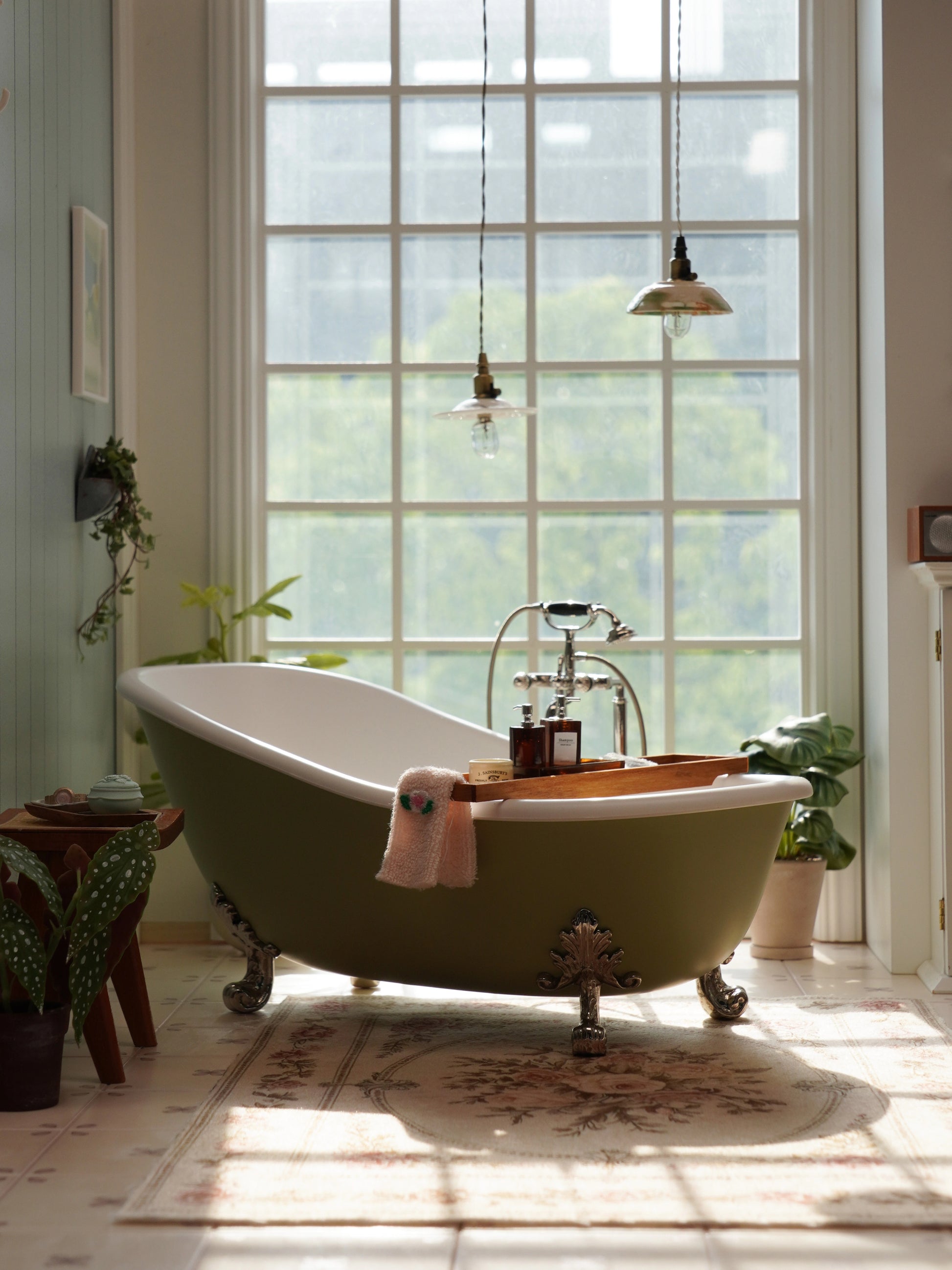 1/6スケール ドールハウス家具 – バスタブ | BJD、ブライス、フィギュア用ミニチュア ヴィンテージ彫刻バスタブ