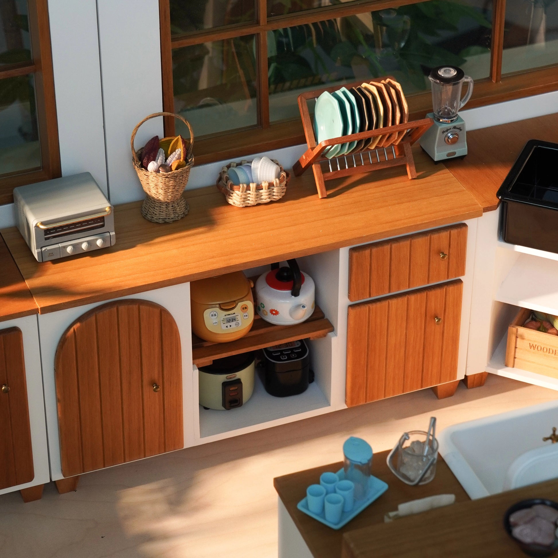 1:6 ミニモデル ドールハウス 家具アクセサリー 木製 食器棚 キッチンシンク サイドキャビネット BJD ブライス 兵士 LOL 装飾小道具