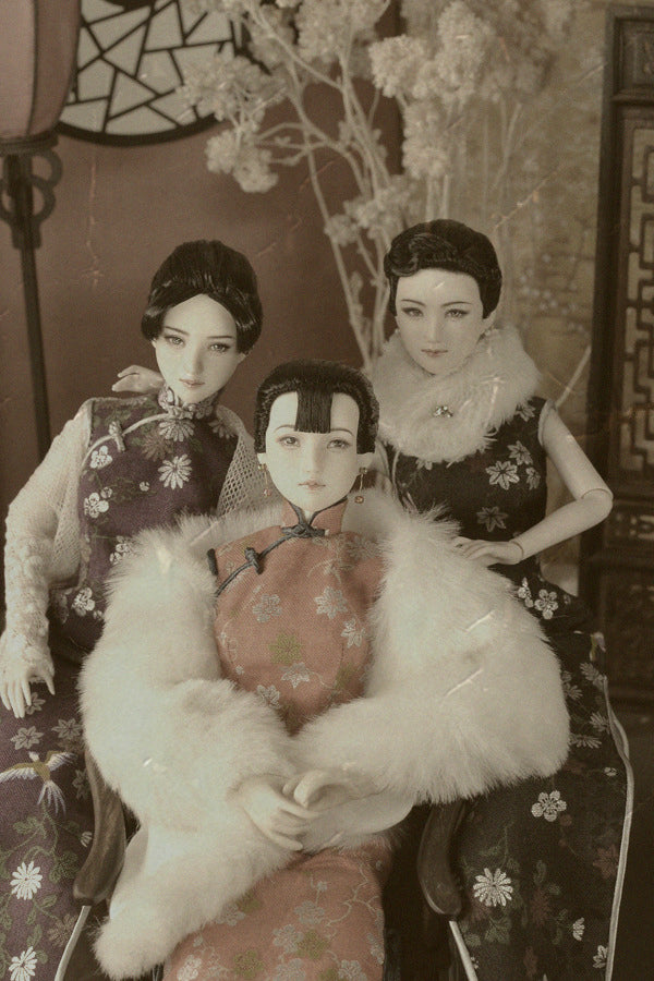 00000番の極細筆で描かれたこの人形は、中華民国時代の象徴的な近代女性、宋宋姉妹にインスピレーションを得ています。仕立ての良い上海風の旗袍をまとった彼女の姿は、洗練された優雅さと優美な曲線美を際立たせています。