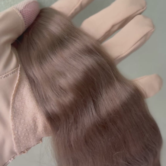 高い光沢と自然な動きのある仕上がりは、ストレートカットからカール、編み込みまで、エレガントなヘアスタイルに最適です。繊維は手作業で洗浄・コーミングされ、品質と輝きを保ちます。