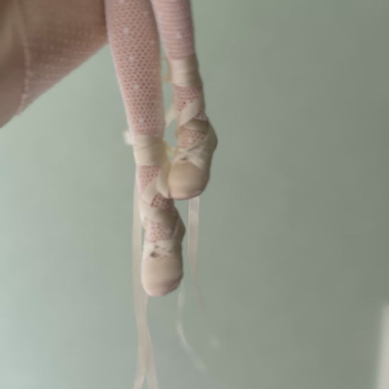 この ドール用ミニチュアバレエシューズ は、柔らかなシルク素材 で作られ、ソフトソール仕様 により上品さと履きやすさを兼ね備えています。